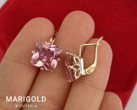 Kolczyki pozłacane z różowymi kamieniami w ażurowej oprawie